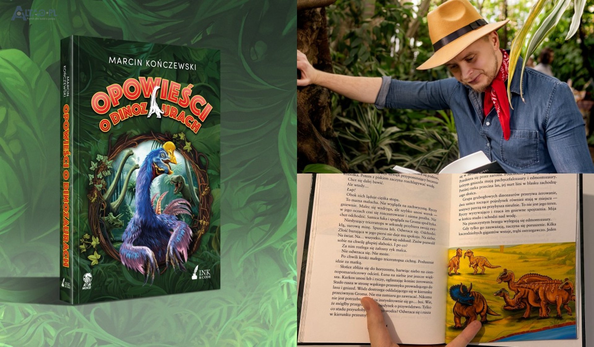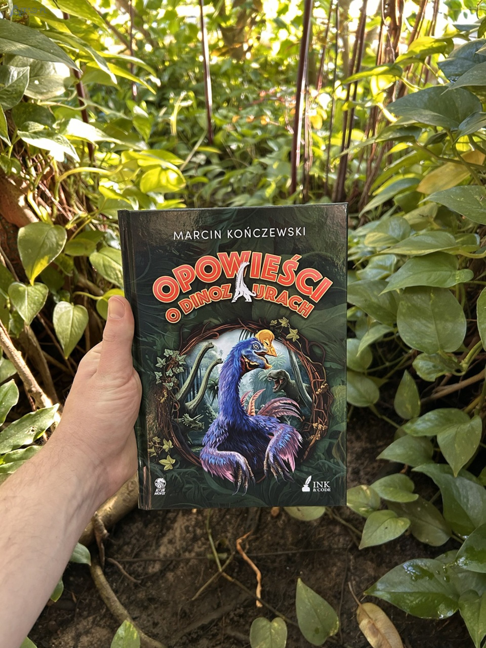 Marcin Kończewski, którego niektórzy znają jako założyciela popkulturowego bloga „Koń Movie”, zaprasza więc do świata realistycznego, choć ubranego w konwencję opowieści dla młodszych czytelników. A dlaczego oryginalnej? Wyjaśniam. Otóż Marcin, współzałożyciel wspierającej szkoły, nowoczesnego narzędzia Educreator (asystent AI), sam był nauczycielem. Lecz takim, który pragnął odchodzić od sztywnych ram edukacji. Stąd też każda opowieść ma dołączone najpierw pytania na sprawdzenie swojej wiedzy (co udało Ci się zapamiętać?), a na koniec zadania matematyczne o różnym stopniu trudności. Młody czytelnik po ich rozwiązaniu uzyskuje odznakę Dinoszefa. Jak? Skanuje smartfonem kod QR. Po tej czynności otwierają się bramy „parku” i trafia do specjalnej aplikacji od wydawnictwa Ink & Code. Tam znajduje jeszcze więcej aktywnych zabaw (np. quizów, kolorowanek) do wygenerowania. A zagłębiając się w książce samemu albo z pomocą rodziców, odkrywa też ciekawostki o dinozaurach, które tu występują. Poznaje ich rozmiary, wagę, charakterystyczne cechy wyglądu itp. I przede wszystkim nazwy – nawet mniej spopularyzowane (jako fascynat dinozaurów w dzieciństwie, dziwiłem się, że niektóre widzę/słyszę po raz pierwszy, i że faktycznie wiele mają wspólnego z kaczkami i kurami, a nie tylko dzisiejszymi krokodylami).
